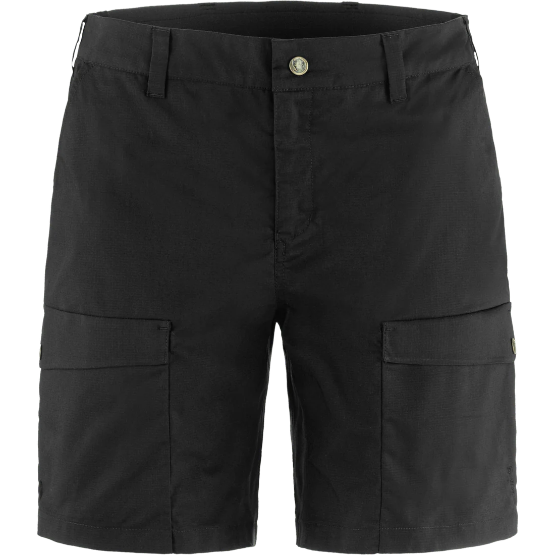 Hybrid technical trekking shorts steeped in Fjällräven DNA. Abisko Hybrid Trail Shorts for women are the perfect combination of G-1000 Lite Stretch on the front and full stretch recycled polyamide/elastane fabric on the back. The G-1000 can be waxed for enhanced weather resistance while the back is highly ventilating and provides excellent freedom of movement. The elasticated waist further enhances comfort and fit. Two open hand pockets and two buttoned leg pockets, one with a zipper.