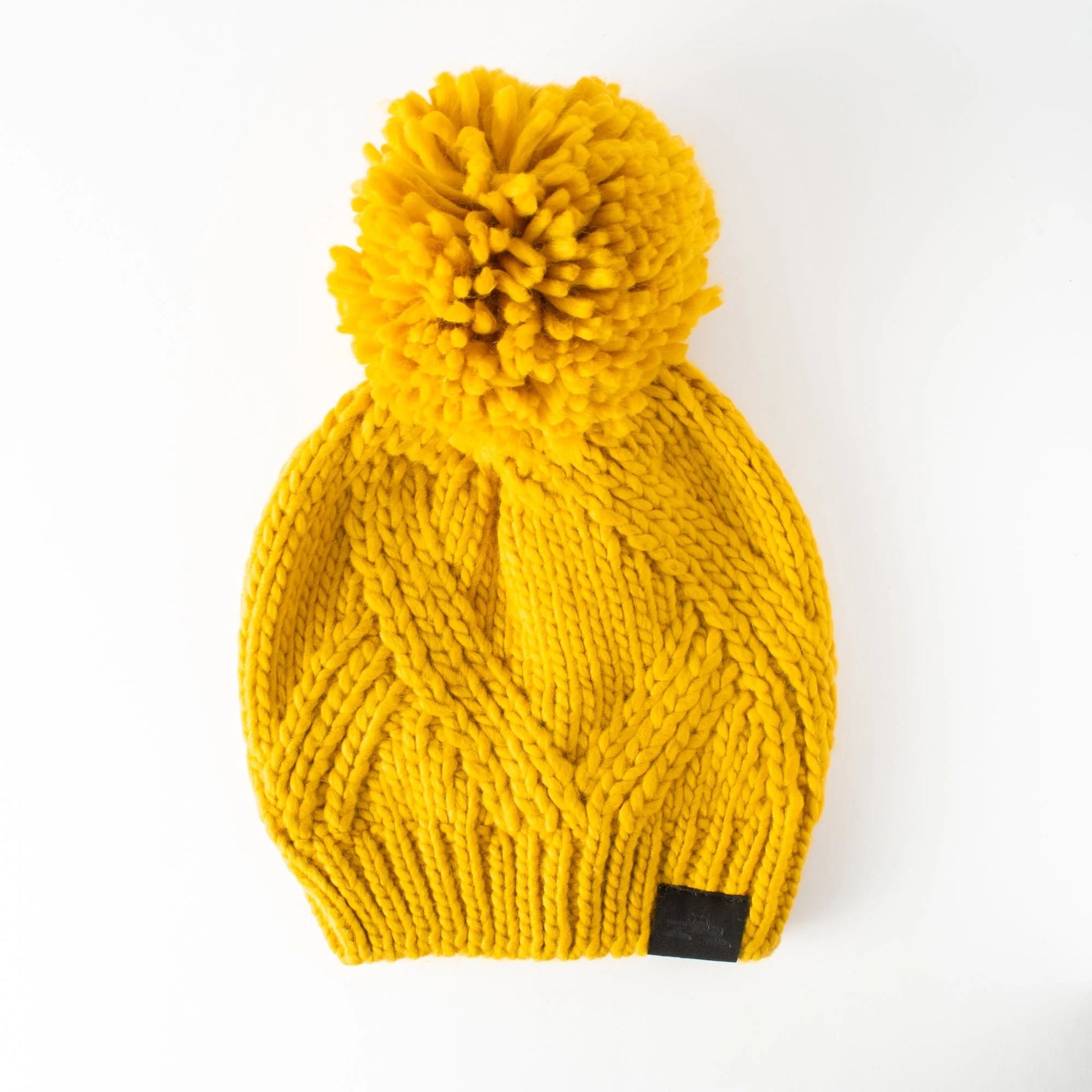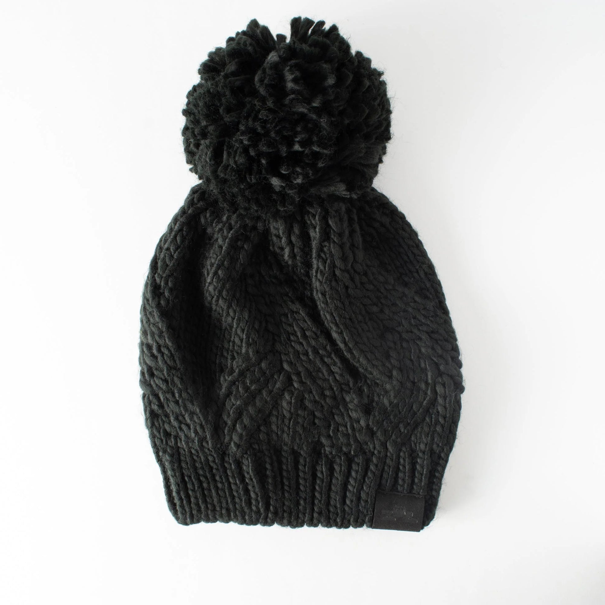 The Juniper Pom is a soft bulky acrylic beanie with a cable knit. Its features include an oversized slouch, oversized pom, and oversized style. Medium weight