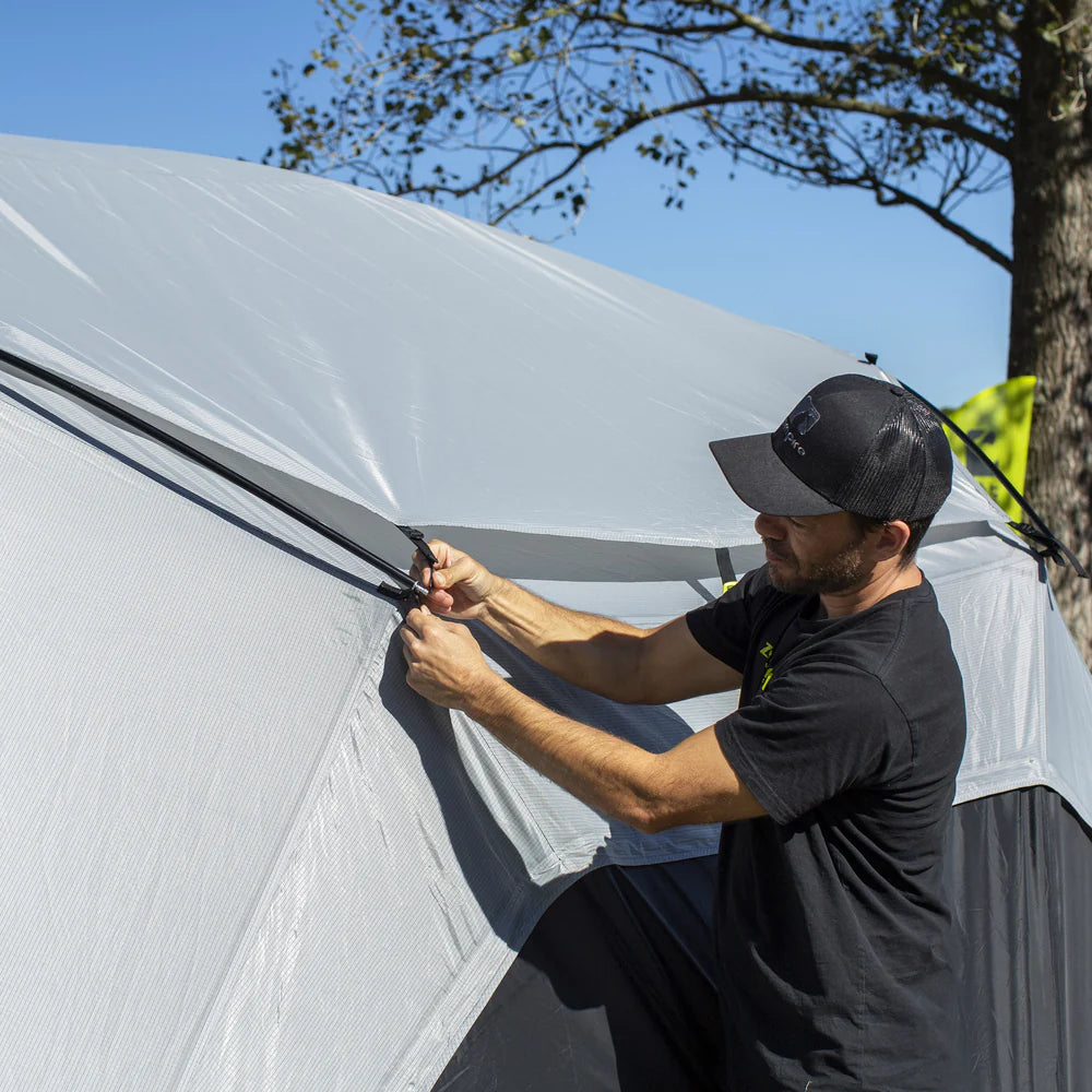 Easy to attach to the Aerospeed 4's aluminium brow poles with eyelets featuring tensioners to secure the fit. A popular add-on in other Zempire Series, this roof cover will pleasantly decrease the internal temperature while providing extra protection from UV rays, tree sap & other debris. Compatible with the Aerospeed 4 only.